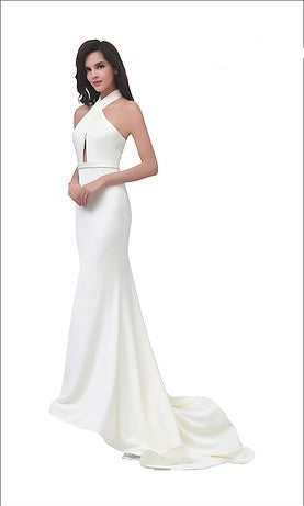 Fit and Flare Silhouette gown with Halter Neckline and Sweep Train. A stunning choice for Cocktail Dress, Guest at Wedding, Bridesmaid, Maid of Honor, Prom, Pageant, Red Carpet, Evening Gown, Mother of the Bride, Mother of the Groom.