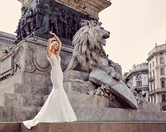 Lace/Tulle V-Neck Wedding Gowns with Cap Sleeves