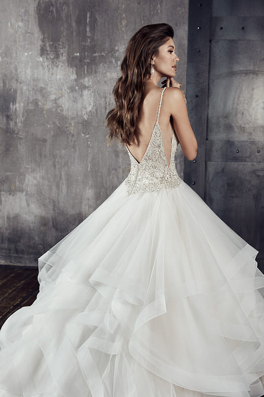 Delicate layers of tulle topped with an exquisite beaded top with cut-out sides.