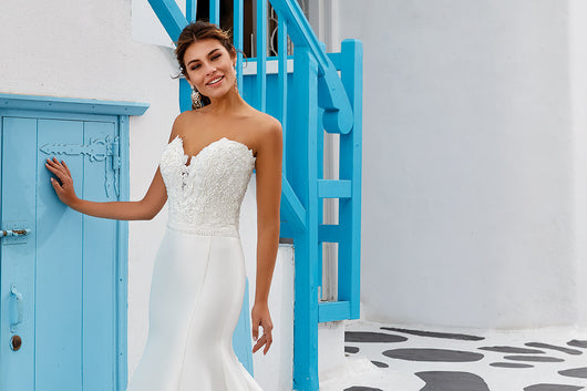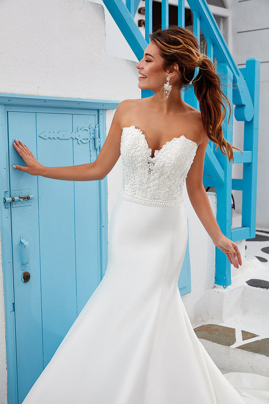 A mermaid gown with a Mikado skirt creates depth and dimension