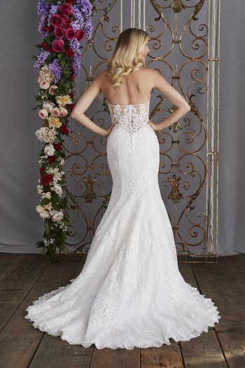 Strapless lace Fit and Flare ,with Illusion Back and Sheer Waist Insets